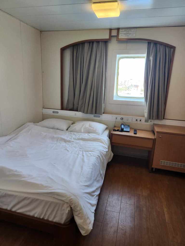 Worth every penny, having your own bathroom on a huge ferry is a bonus, the bed was extremely comfortable, same with the pillows, very basic but still worth it. I paid 150 euros. I would recommend booking whenever you can, so you don’t miss out on the onboard accommodation.
